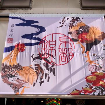 「京の台所」として親しまれる「錦市場」。西側の入り口に江戸時代の絵師・伊藤若冲の絵をモチーフにした大きな垂れ幕がかかっている...